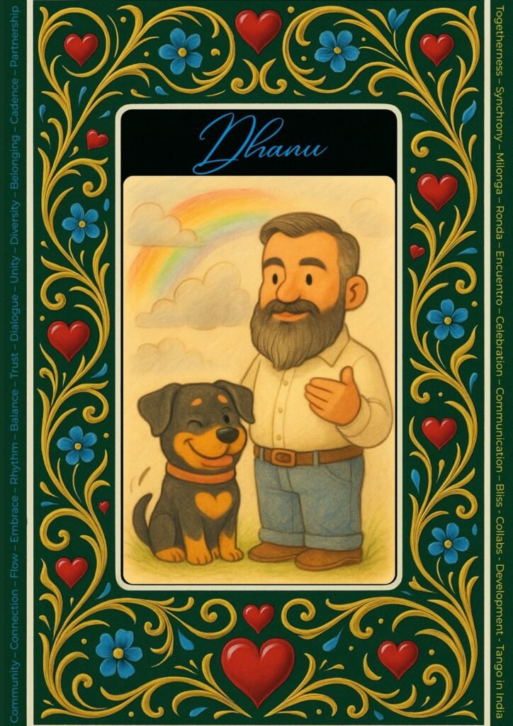 We are blessed to have Dhanu with us also… Our Tango Papa Smurf, part Professor, part Gandalf, & always a guiding presence. A true beacon of our community, he has long held space for the growth of Argentine tango in India.